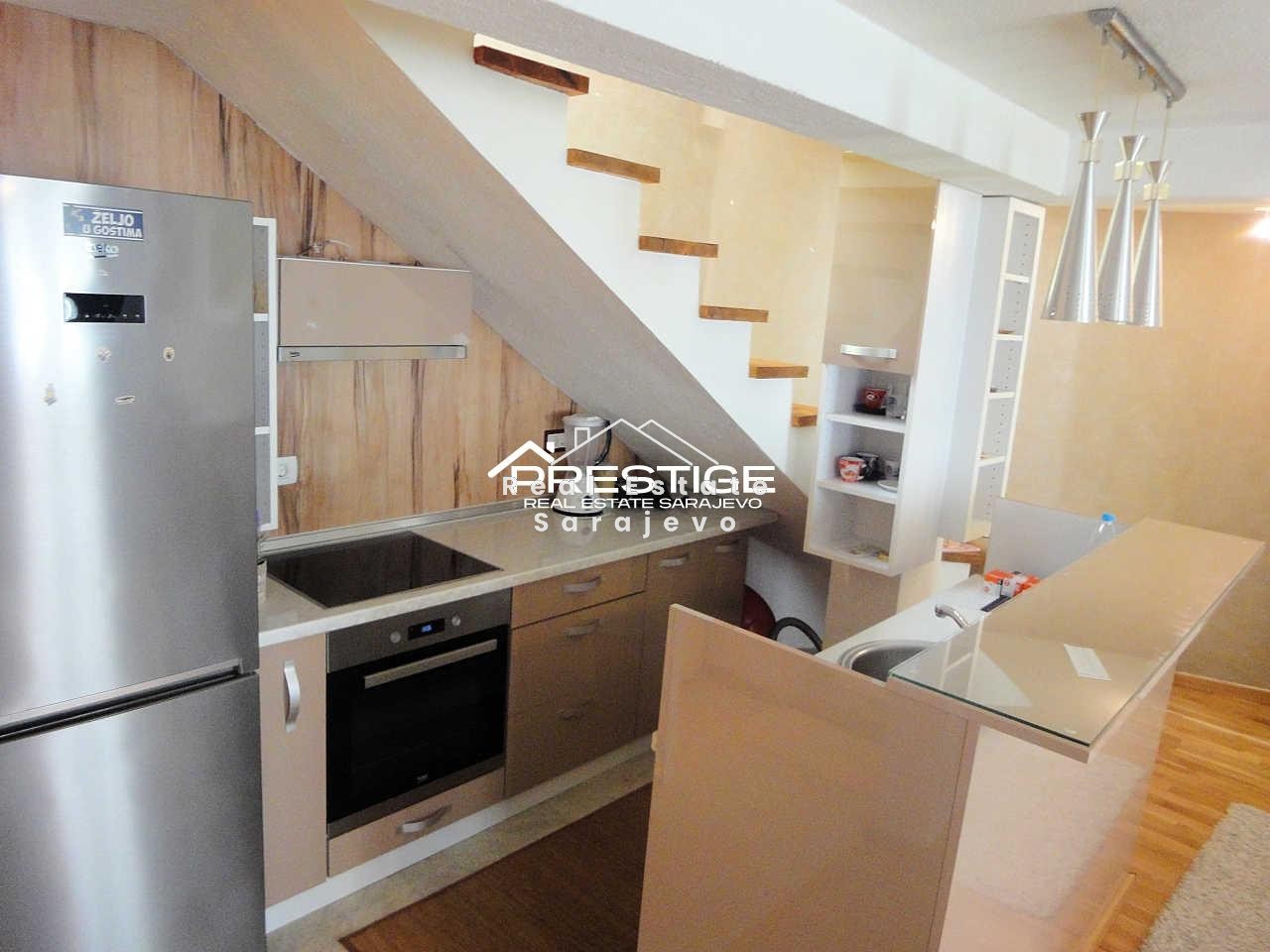 Ova lijepa mala kuća za iznajmljivanje nalazi se u centru grada, na Bjelavama. Kuća ima 90 m2 površine i sastoji se od dnevnog boravka sa trpezarijom i kuhinjom, 2 spavaće sobe, kupatila sa tuš kabinom, zasebnog toaleta, hodnika i balkona. Kompletno je namještena. Kuća ima vlastito etažno grijanje na struju (konvertori), mašinu za veš, mašinu za suđe, kablovsku TV i brzi internet pristup. Troškovi režija nisu uključeni u cijenu mjesečnog najma.
