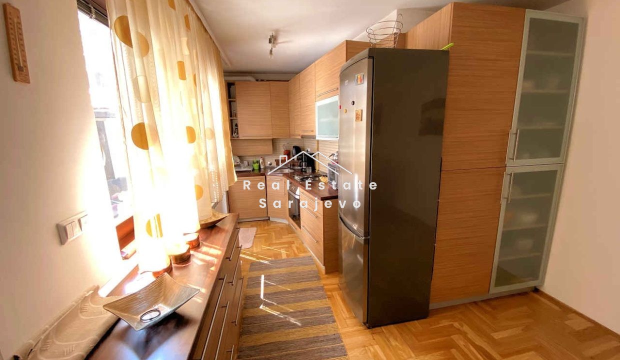 Ova lijepa kuća za iznajmljivanje nalazi se u Starom Gradu, blizu Baščaršije. Kuća ima 130 m2 površine i sastoji se od 4 spavaće sobe, dnevnog boravka sa trpezarijom i u potpunosti opremljenom kuhinjom, 2 kupatila (jedno sa kadom a drugo sa tuš kabinom) i hodnika. Kompletno je namještena. Kuća ima vlastito etažno grijanje na plin, mašinu za veš, mašinu za suđe, kablovsku TV, brzi internet pristup, malo dvorište i parking mjesto. Troškovi režija nisu uključeni u cijenu mjesečnog najma.