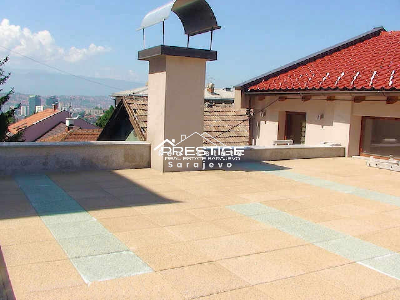 Ovaj poslovni prostor za iznajmljivanje nalazi se na Bjelavama. Prostor ima 280 m2 površine i sastoji se od 5 prostorija, kuhinje, 2 kupatila, zasebnog toaleta, podruma, hodnika, balkona i velike terase. Nije namješten. Poslovni prostor ima vlastito etažno grijanje na plin i struju (alternativa), alarm, klimu, kablovsku TV, brzi internet pristup, malu baštu i 2 garaže. Troškovi režija nisu uključeni u cijenu mjesečnog najma.
