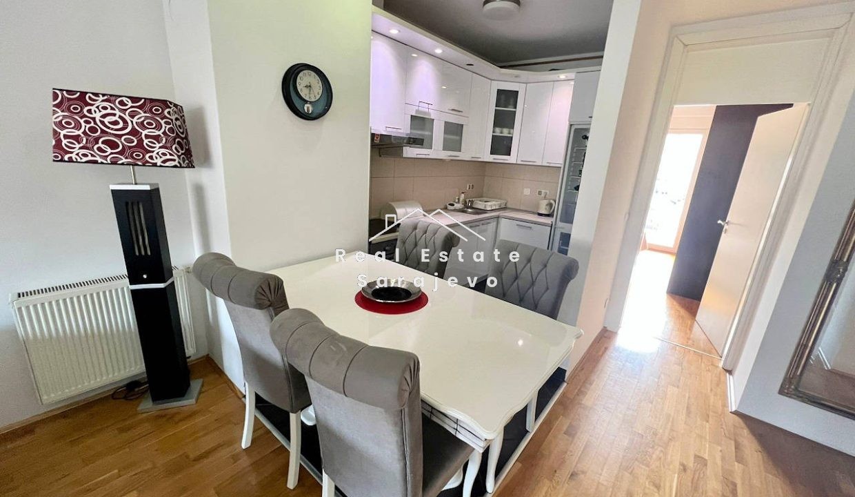 Ovaj lijep trosoban stan za iznajmljivanje nalazi se na drugom spratu stambene zgrade u Novom Sarajevu, 5 minuta autom do centra grada. Stan ima 75 m2 površine i sastoji se od dnevnog boravka sa trpezarijom i u potpunosti opremljenom kuhinjom, 2 spavaće sobe, kupatila sa tuš kabinom, ostave, hodnika i balkona. Kompletno je namješten. Stan ima vlastito etažno grijanje na plin, sigurnosna vrata, klimu, mašinu za veš, mašinu za suđe, kablovsku TV i brzi internet pristup. Troškovi režija nisu uključeni u cijenu mjesečnog najma.