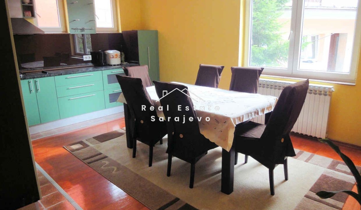 Ovaj lijep dvosoban stan za iznajmljivanje nalazi se na prvom spratu male stambene zgrade na Mejtašu, 10 minuta pješice do BBI šoping centra. Stan ima 70 m2 površine i sastoji se od dnevnog boravka, u potpunosti opremljene kuhinje sa trpezarijom, spavaće sobe, kupatila sa kadom, hodnika i balkona. Kompletno je namješten. Stan ima vlastito etažno grijanje na plin, klimu, sigurnosna vrata, mašinu za veš, kablovsku TV i brzi internet pristup. Troškovi režija nisu uključeni u cijenu mjesečnog najma.
