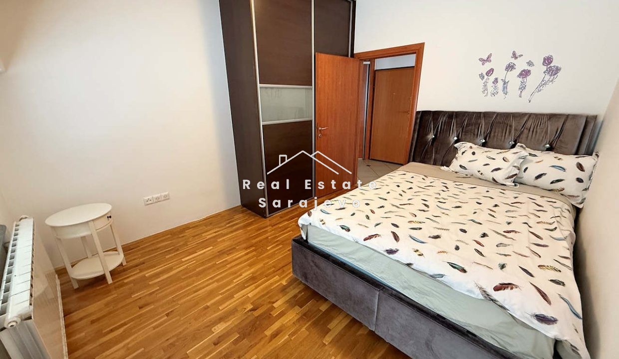 Ovaj lijep trosoban stan za iznajmljivanje nalazi se na drugom spratu (zadnji sprat) stambene zgrade na Grbavici, blizu SCC šoping centra. Stan ima 110 m2 površine i sastoji se od dnevnog boravka sa trpezarijom i u potpunosti opremljenom kuhinjom, 2 spavaće sobe, kupatila sa kadom, zasebnog toaleta, hodnika i 2 balkona. Kompletno je namješten. Stan ima vlastito etažno grijanje na plin, klimu, mašinu za veš, mašinu za suđe, kablovsku TV, brzi internet pristup i parking. Troškovi režija nisu uključeni u cijenu mjesečnog najma. Postoji mogućnost unajmljivanja garaže za dodatnu cijenu.