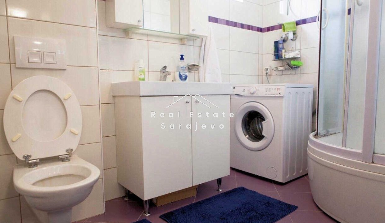 Ovaj lijep dvosoban stan za iznajmljivanje nalazi se na drugom spratu stambene zgrade na Bjelavama, 15 minuta pješice do BBI šoping centra. Stan ima 52 m2 površine i sastoji se od dnevnog boravka, u potpunosti opremljene kuhinje sa trpezarijom, spavaće sobe, kupatila sa tuš kabinom i hodnika. Kompletno je namješten. Stan ima vlastito etažno grijanje na plin, klimu, sigurnosna vrata, mašinu za veš, mašinu za suđe, kablovsku TV i brzi internet pristup. Troškovi režija nisu uključeni u cijenu mjesečnog najma.