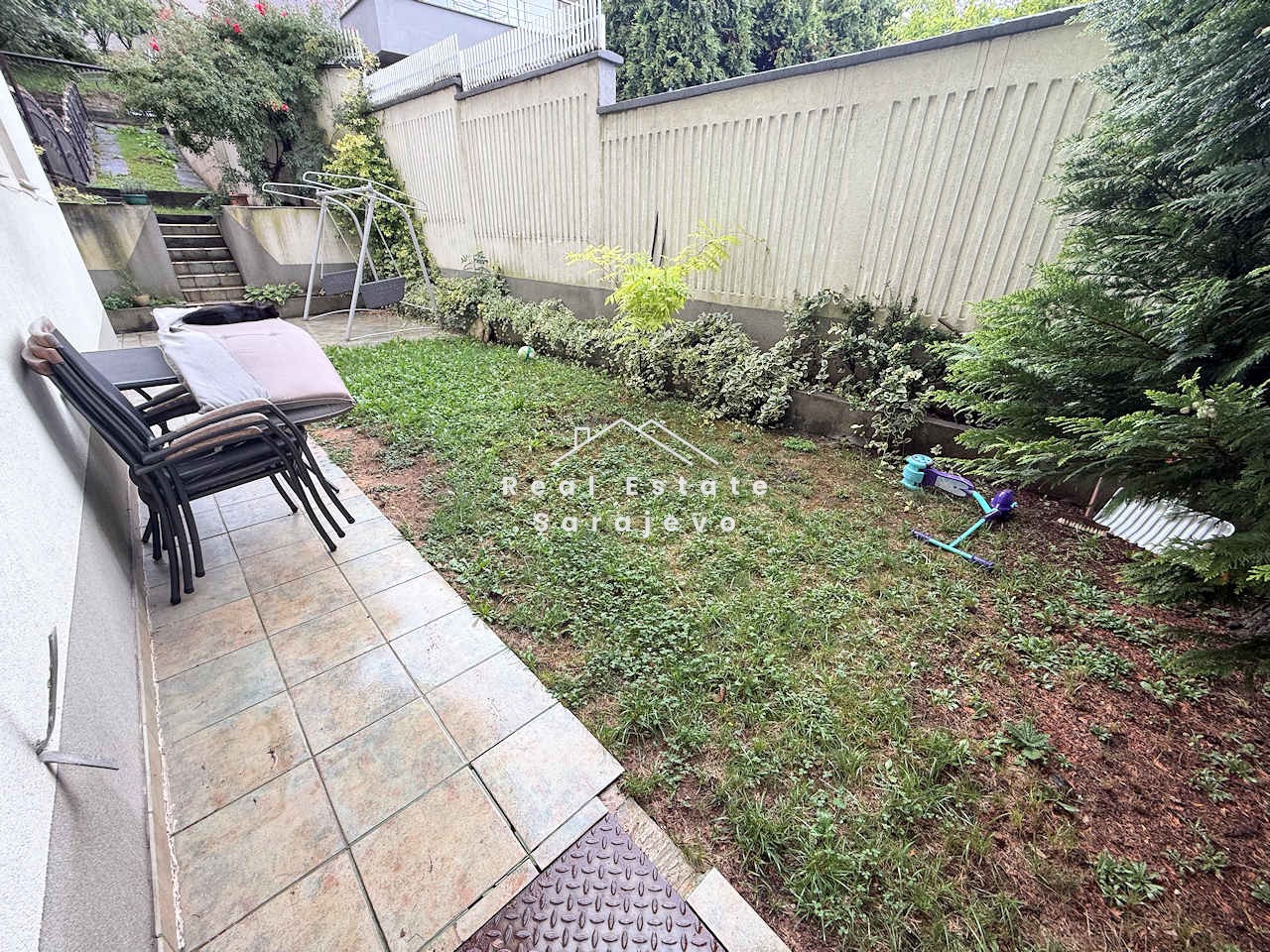 Ovaj lijep trosoban stan za iznajmljivanje nalazi se u privatnoj kući (poseban ulaz) na Tranzitu, 5 minuta autom do centra grada. Stan je površine od 93 m2 i sastoji se od 2 spavaće sobe, dnevnog boravka sa trpezarijom i u potpunosti opremljenom kuhinjom, kupatila sa kadom, hodnika i terase. Kompletno je namješten. Stan ima etažno grijanje na plin, sigurnosna vrata, mašinu za veš, sušilicu, mašinu za suđe, kablovsku TV, brzi internet pristup i malu baštu. Troškovi režija nisu uključeni u cijenu mjesečnog najma.