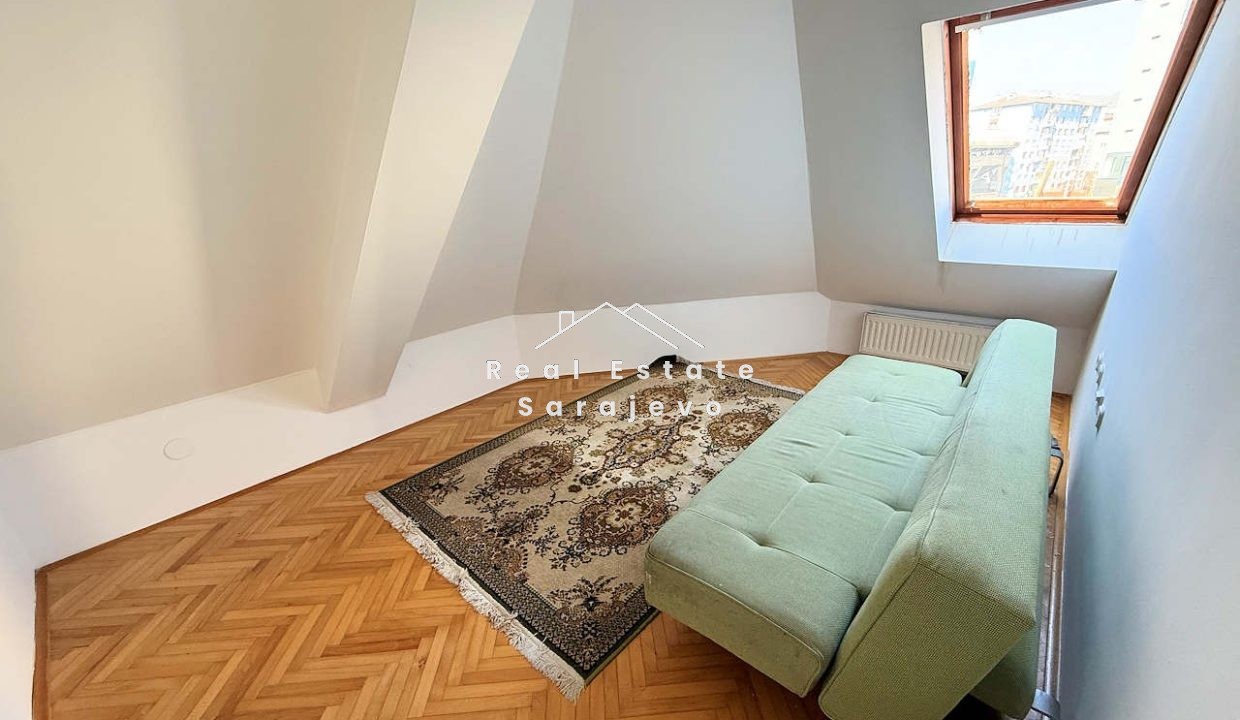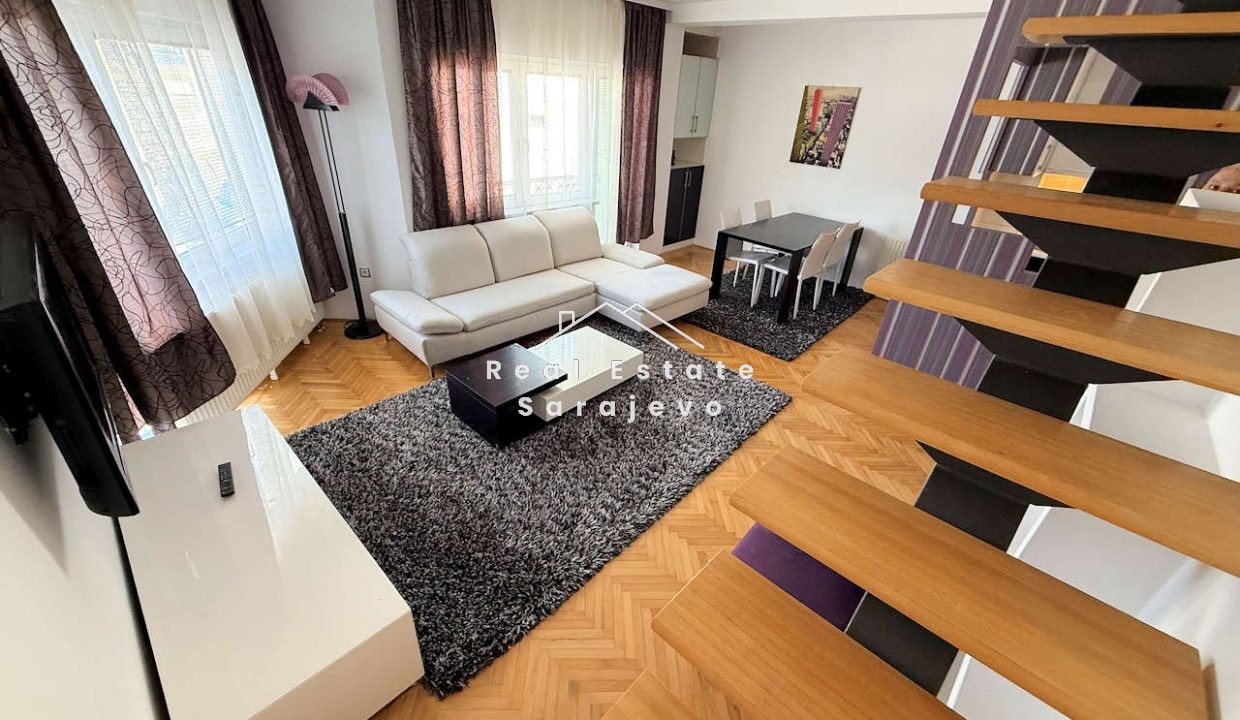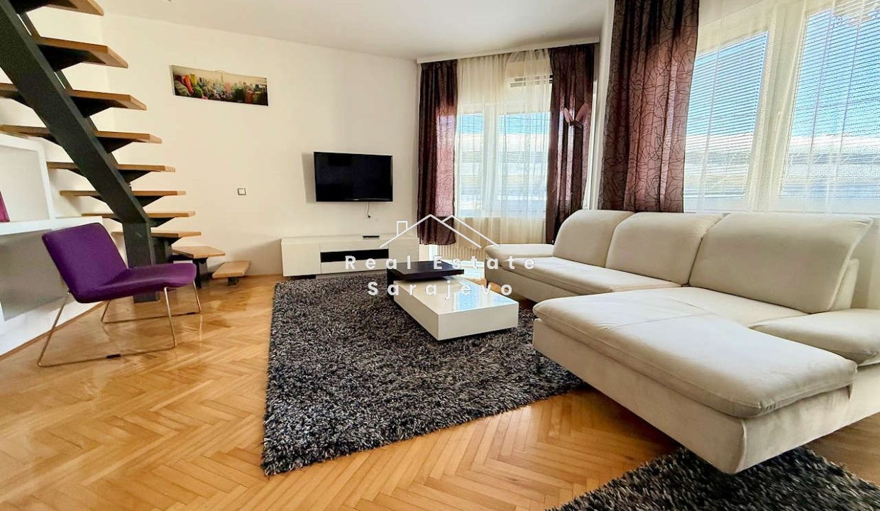 Ovaj lijep dvoetažni stan za iznajmljivanje nalazi se u privatnoj kući (poseban ulaz) na Grbavici, 5 minuta autom do centra grada. Stan ima 80 m2 površine i sastoji se od 3 spavaće sobe, dnevnog boravka sa trpezarijom i u potpunosti opremljenom kuhinjom, 2 kupatila (jedno sa kadom a drugo sa tuš kabinom), garderobera, hodnika i balkona. Kompletno je namješten. Stan ima vlastito etažno grijanje na plin, klimu, sigurnosna vrata, mašinu za veš, mašinu za suđe, sušilicu, kablovsku TV, brzi internet pristup i parking. Troškovi režija nisu uključeni u cijenu mjesečnog najma.