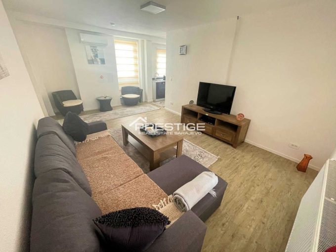 Ovaj lijep dvosoban stan za iznajmljivanje nalazi se na četvrtom spratu (nema lifta) stambene zgrade u Novom Sarajevu, Hrasno, 5 minuta autom do centra grada. Stan ima 59 m2 površine i sastoji se od dnevnog boravka, trpezarije, u potpunosti opremljene kuhinje, spavaće sobe, kupatila sa kadom, ostave, hodnika i zatvorenog balkona. Kompletno je namješten. Stan ima centralno grijanje, mašinu za veš, mašinu za suđe, klimu, kablovsku TV i brzi internet pristup. Troškovi režija nisu uključeni u cijenu mjesečnog najma.