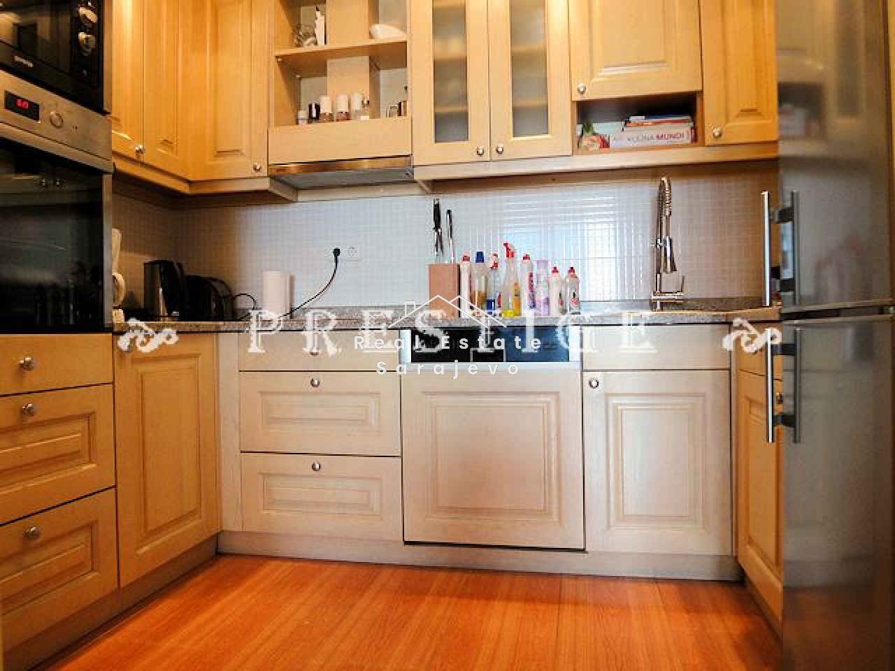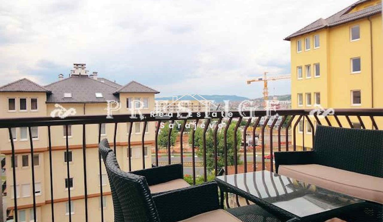 Ovaj lijep četverosoban stan za iznajmljivanje nalazi se na šestom spratu (lift) nove stambene zgrade na Stupu, blizu aerodroma Sarajevo i 10-15 minuta autom do centra grada. Stan ima 104 m2 površine i sastoji se od dnevnog boravka sa trpezarijom i u potpunosti opremljenom kuhinjom, 3 spavaće sobe, kupatila sa tuš kabinom, zasebnog toaleta, hodnika i balkona. Kompletno je namješten sa novim i modernim namještajem. Stan ima vlastito etažno grijanje na plin, 4 klima uređaja, alarm, sigurnosna vrata, mašinu za veš, sušilicu, mašinu za suđe, satelitsku TV, brzi internet pristup i garažu. Troškovi režija nisu uključeni u cijenu mjesečnog najma.