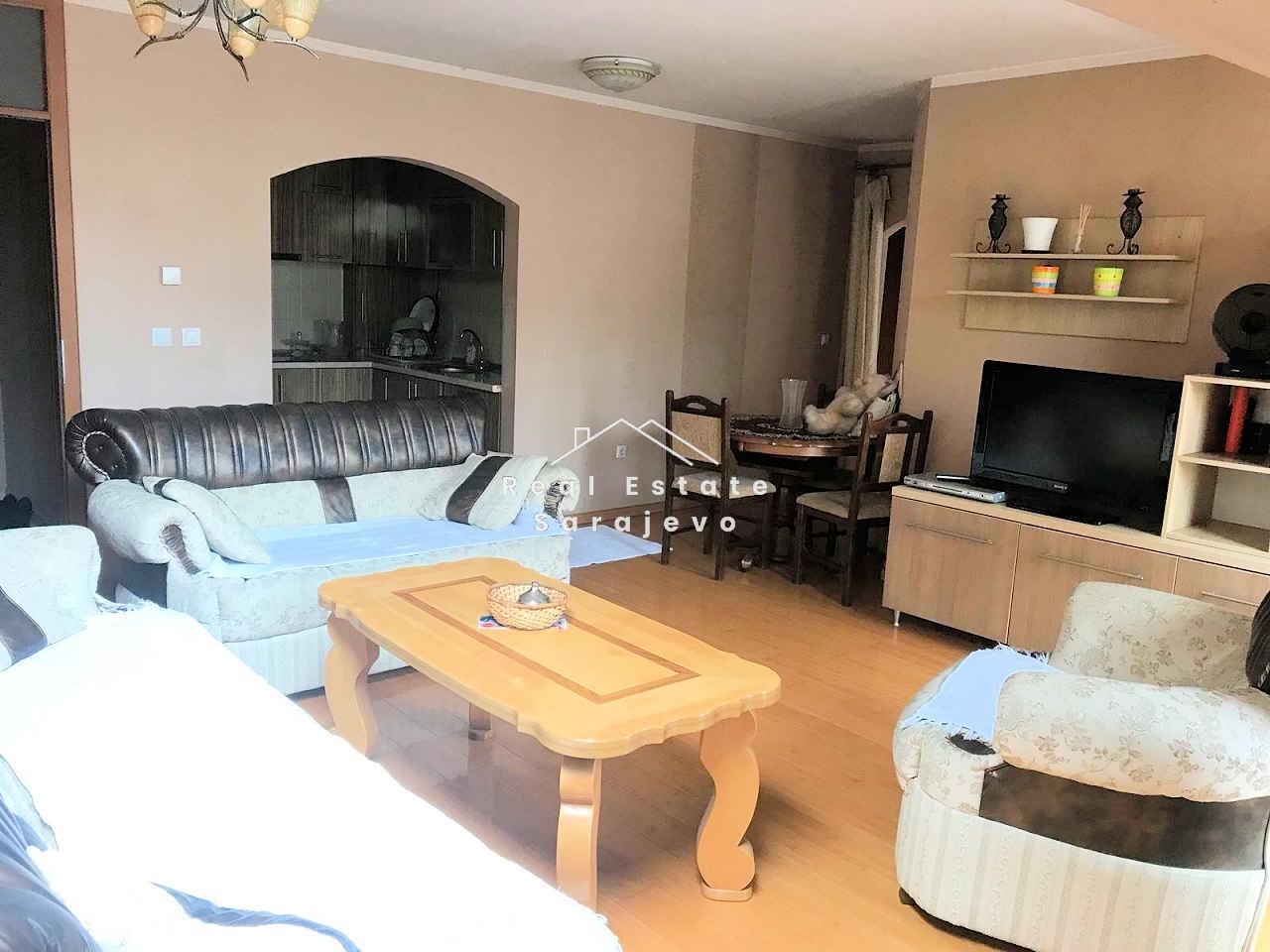 Ovaj četverosoban stan za iznajmljivanje nalazi se na šestom spratu (lift) nove stambene zgrade na Stup-u, blizu aerodroma Sarajevo i 10-15 minuta autom do centra grada. Stan ima 85 m2 površine i sastoji se od dnevnog boravka sa trpezarijom i u potpunosti opremljenom kuhinjom, 3 spavaće sobe, kupatila sa tuš kabinom, hodnika i balkona. Kompletno je namješten. Stan ima vlastito etažno grijanje na plin, klimu, sigurnosna vrata, mašinu za veš, mašinu za suđe, kablovsku TV i brzi internet pristup. Troškovi režija nisu uključeni u cijenu mjesečnog najma.