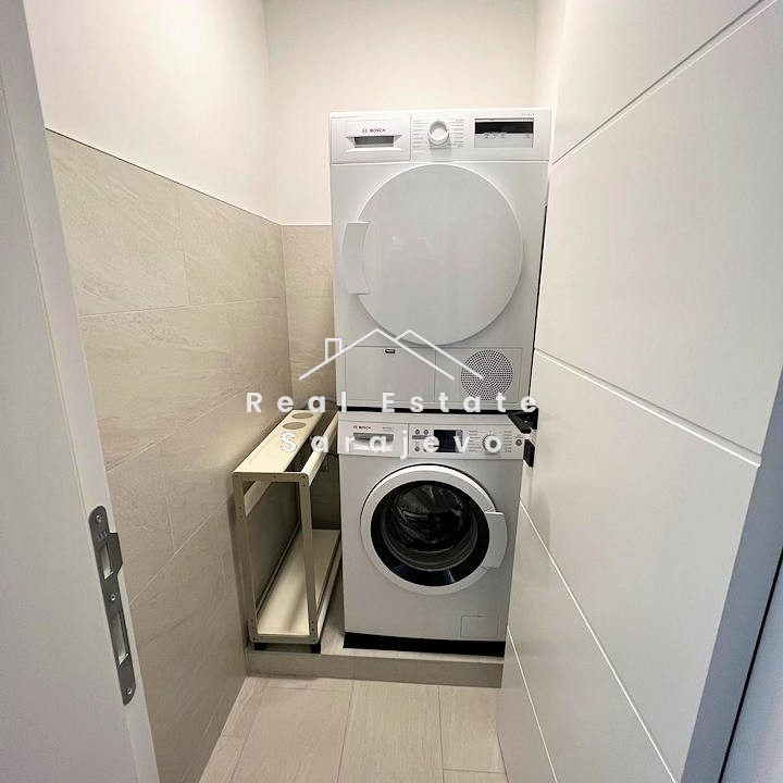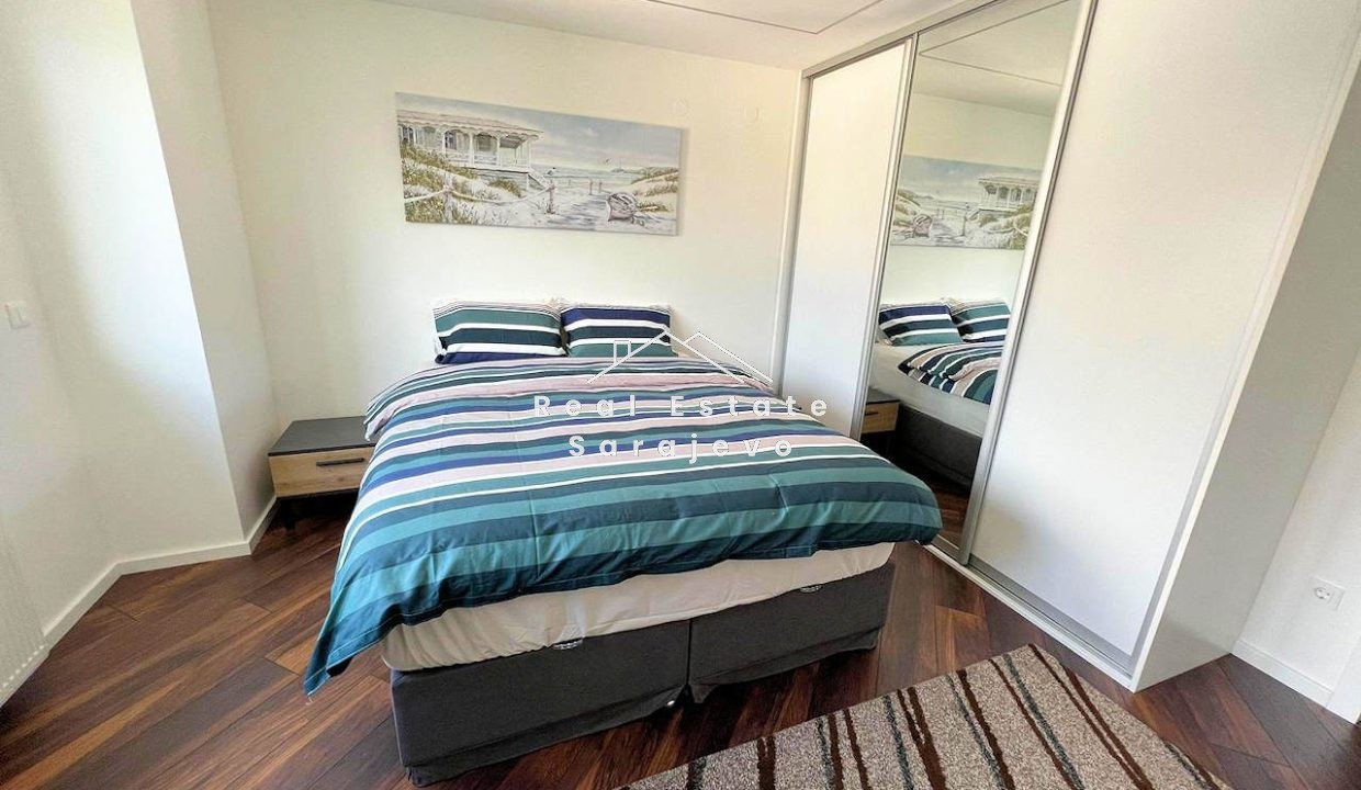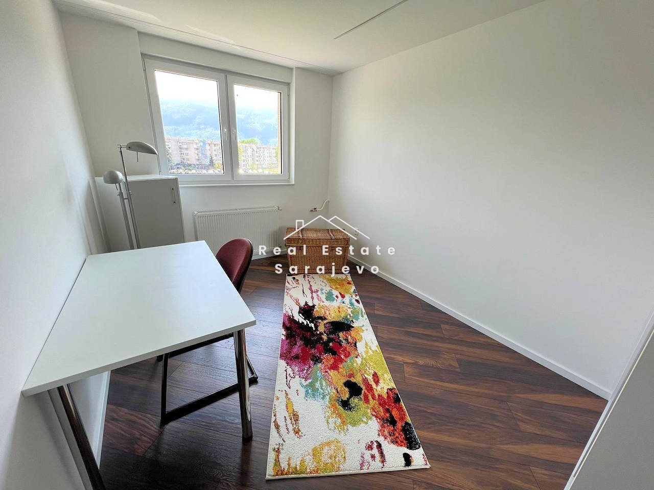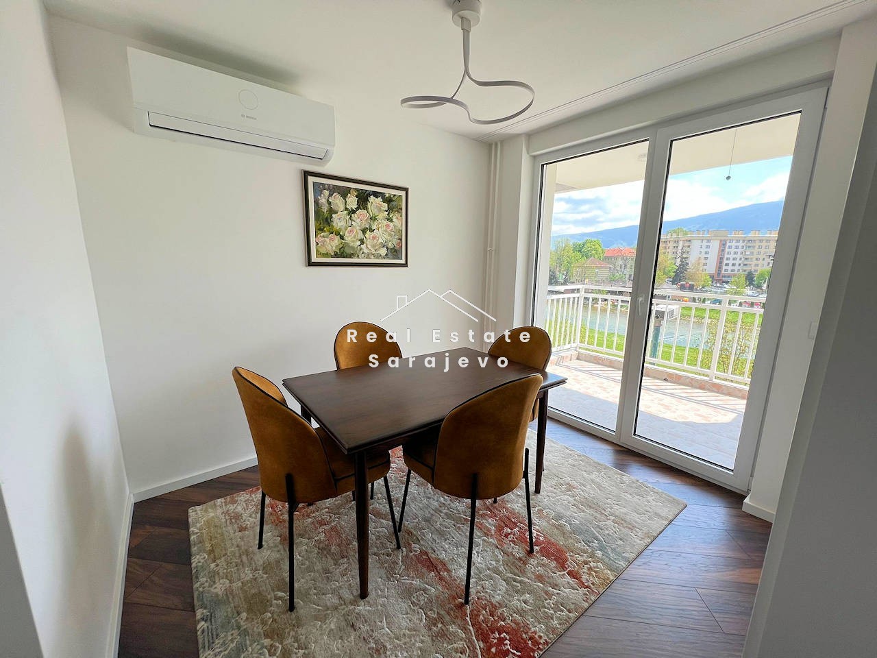 Ovaj prelijep četverosoban stan za iznajmljivanje nalazi se na trećem spratu stambene zgrade na Ilidži. Stan ima 85 m2 površine i sastoji se od dnevnog boravka, trpezarije, u potpunosti opremljene kuhinje, 3 spavaće sobe, kupatila sa tuš kabinom, zasebnog toaleta, vešeraja, hodnika i balkona sa prelijepim pogledom na rijeku. Kompletno je namješten sa novim i modernim namještajem. Stan ima centralno grijanje, klimu, sigurnosna vrata, mašinu za veš, sušilicu, mašinu za suđe, brzi internet pristup i kablovsku TV. Troškovi režija nisu uključeni u cijenu mjesečnog najma.