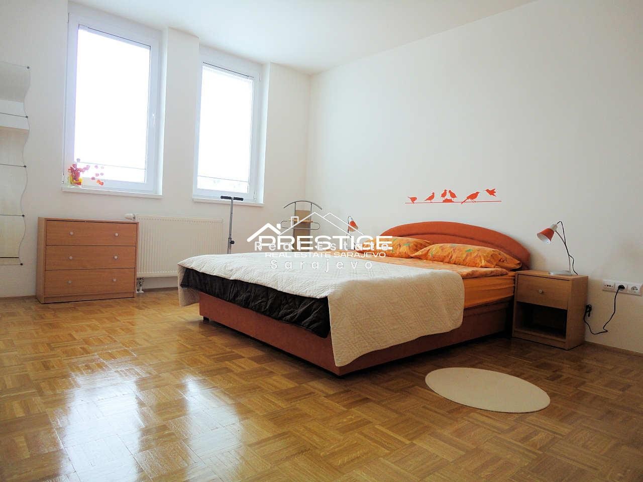 Ovaj lijep dvosoban stan za iznajmljivanje nalazi se na dvanaestom spratu (lift) novije stambene zgrade na Malti, u Novom Sarajevu, nekoliko koraka od Mercator šoping centra i samo 5 minuta autom od centra grada. Stan ima 62 m2 površine i sastoji se od dnevnog boravka sa trpezarijom i u potpunosti opremljenom kuhinjom, spavaće sobe, kupatila sa kadom, male ostave, hodnika i terase sa lijepim pogledom. Kompletno je namješten. Stan ima vlastito etažno grijanje na plin, klimu, sigurnosna vrata, mašinu za veš, mašinu za suđe, kablovsku TV i brzi internet pristup. Troškovi režija nisu uključeni u cijenu mjesečnog najma. Postoji mogućnost unajmljivanja sigurnog parking mjesta za dodatnu cijenu.