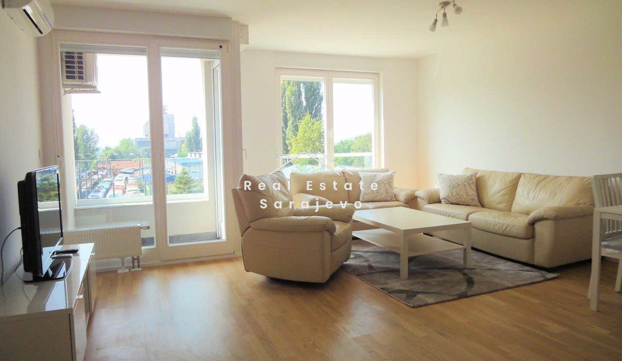Ovaj lijep dvosoban stan za iznajmljivanje nalazi se na drugom spratu nove stambene zgrade u naselju Otoka, 5 minuta autom od centra grada. Stan ima 59 m2 površine i sastoji se od dnevnog boravka sa trpezarijom i u potpunosti opremljenom kuhinjom, spavaće sobe, kupatila sa tuš kabinom, ostave, hodnika i balkona. Kompletno je namješten. Stan ima centralno grijanje, sigurnosna vrata, klimu, mašinu za veš, mašinu za suđe, kablovsku TV, brzi internet pristup i garažno mjesto. Troškovi režija nisu uključeni u cijenu mjesečnog najma.