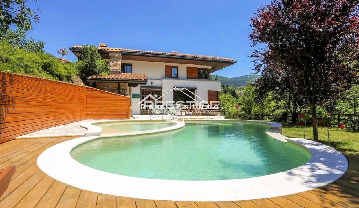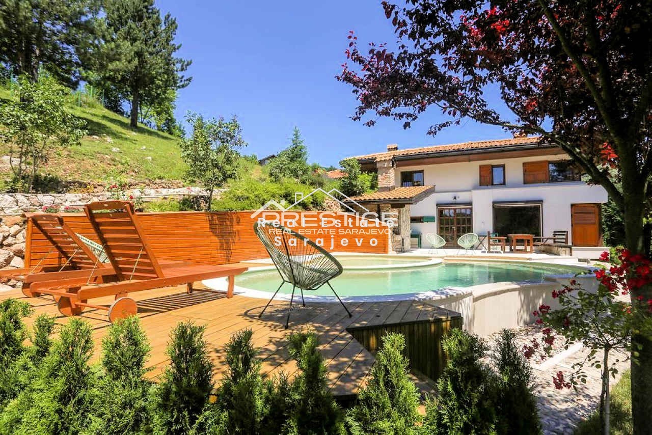 Ova fantastična vila za iznajmljivanje nalazi se u Starom Gradu, 3km od Baščaršije. Vila ima 240 m2 površine i sastoji se od dnevnog boravka sa trpezarijom i u potpunosti opremljenom kuhinjom, 3 spavaće sobe, 2 kupatila, vešeraja i terase. Kompletno je namještena. Vila ima sistem centralnog grijanja, klimu, mašinu za veš, sušilicu, mašinu za suđe, kablovsku TV, Wi-Fi internet, kamin, veliku terasu, vanjski roštilj, bazen, baštu, garažu i parking prostor. Veoma je intimna.