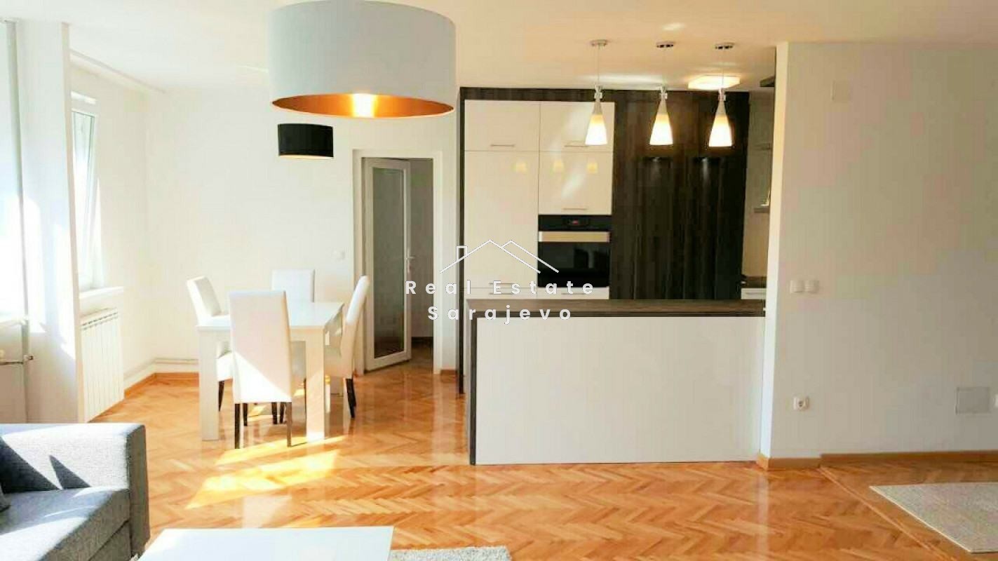 This fabulous apartment for rent is located on fifth floor of residential building (2 elevators) on Grbavica, close to SCC and Importanne shopping center. Apartment has 80 m2 floor area and consists of living room with dining area and fully equipped kitchen, 2 bedrooms, bathroom with shower cabin, separated toilet, storage room and hall. It is completely furnished. Apartment has central heating, security door, washer, dishwasher, cable TV and high speed internet access. Utility bills are not included in the monthly price.