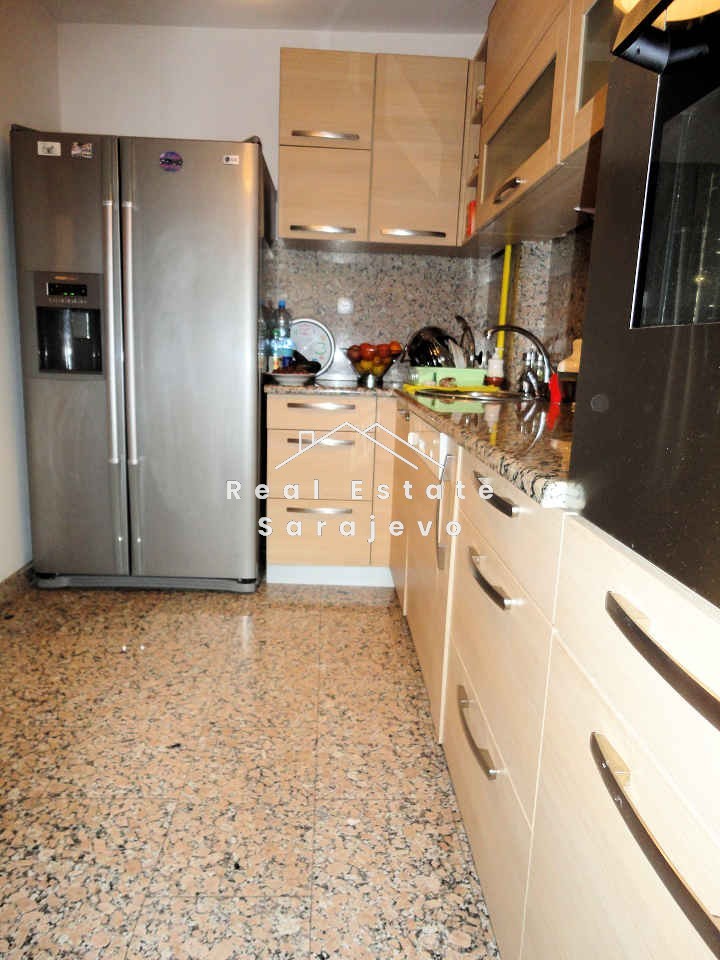 This absolutely amazing 2 level apartment for rent is located in private house (separated entrance), on Koševsko Brdo, 10-15 minutes walking distance to SCC shopping center. Apartment has 150 m2 floor area and consists of 3 spacious bedrooms, living room with dining area and fully equipped kitchen, 2 bathrooms (both with shower cabin), storage space and big terrace with beautiful view. Apartment is fully furnished, brand new interior. It has own heating system on gas and alternative on electricity, security door, washer, dishwasher, cable TV and high speed internet access. There is possibility of renting garage. Utility bills are not included in the monthly price.