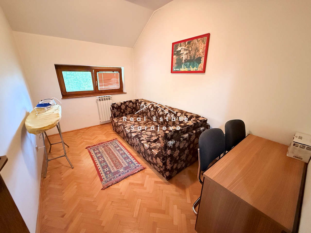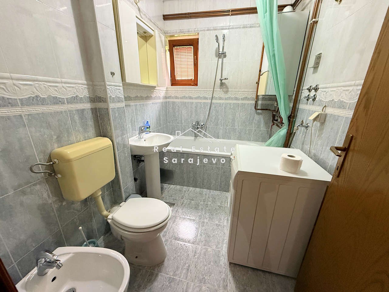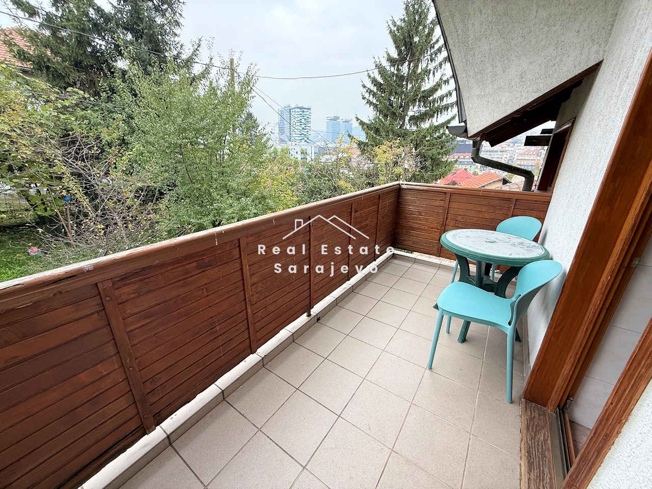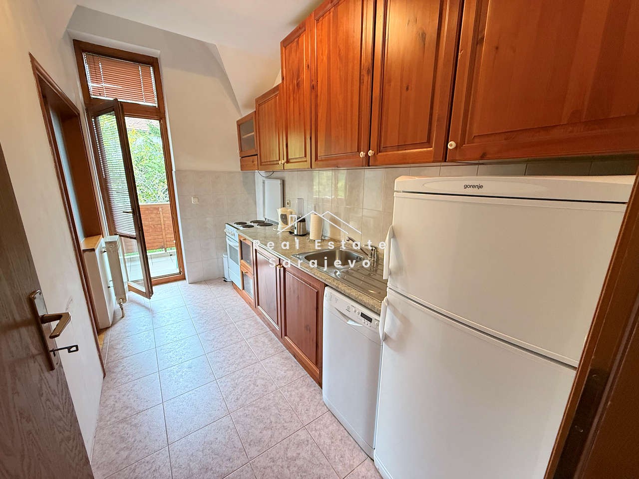 This 2 bedroom apartment for rent is located on third floor of private house (separated entrance) on Skenderija. Apartment has 70 m2 floor area and consists of living room with dining area, fully equipped kitchen, 2 bedrooms, bathroom with bath tub, hall and 2 balconies with beautiful view. It is completely furnished. Apartment has own heating system on gas, washer, dishwasher, cable TV and high speed internet access. Utility bills are not included in the monthly price. There is possibility of renting garage space for additional price.