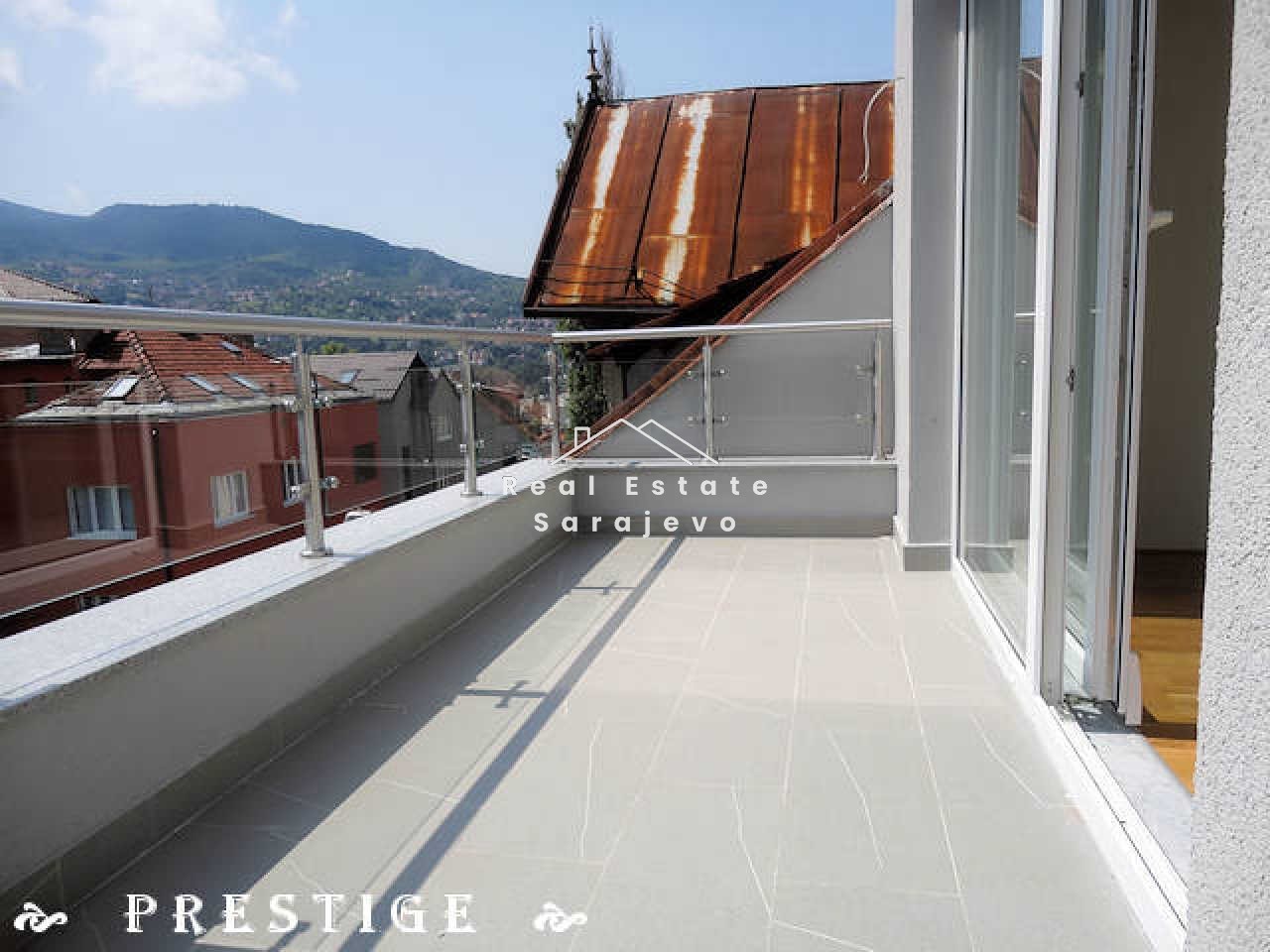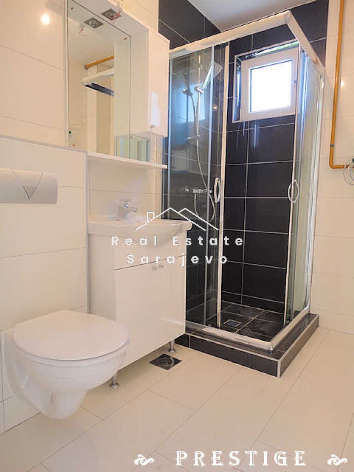 This beautiful 2 bedroom apartment for rent is located on third floor (no elevator) of newly built small residential building in city center – Mejtaš area, close to the Cathedral. Apartment has 66 m2 floor area and consists of living room with dining area and fully equipped kitchen, 2 bedrooms, bathroom with shower cabin, hall, balcony and shared building roof terrace with small kitchen, WiFi internet and beautiful view on mountains. It is completely furnished. Apartment has own heating system on electricity, air conditioner, washer, dishwasher, alarm system, security door, cable TV, high speed internet access and parking space. Utility bills are not included in the monthly price.