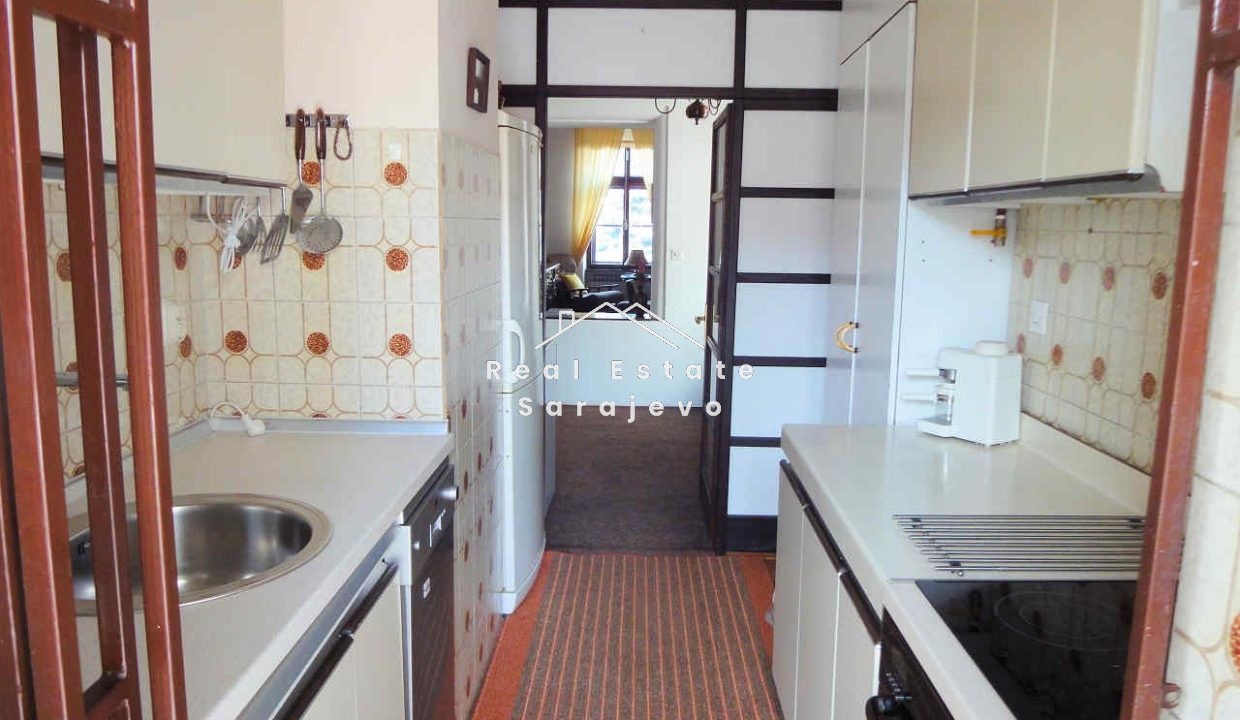 This nice 2 bedroom apartment for sale is located on first floor of residential building on Bjelave, close to BBI shopping center. Apartment has 80 m2 floor area and consists of living room with dining area, fully equipped kitchen, 2 bedrooms, bathroom with shower cabin, hall and balcony. Apartment has own heating system on gas.