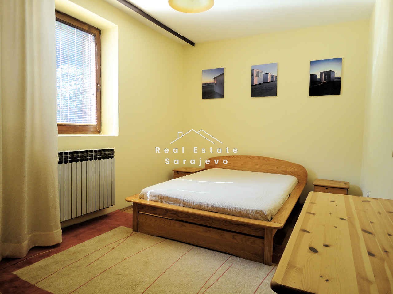 This beautiful 3 bedroom apartment for rent is located in private house (separated entrance) on Tranzit, 5 minutes by car to city center. Apartment has 110 m2 floor area and consists of 3 bedrooms, living room with dining area, fully equipped kitchen, bathroom with jacuzzi bath tub, hall and terrace with beautiful view. It is fully furnished. Apartment has own heating system on gas, security door, washer, dishwasher, cable TV, satellite TV, high speed internet access, parking and big garage. House is surrounded by fence with remote controlled gate. Utility bills are not included in the monthly price.