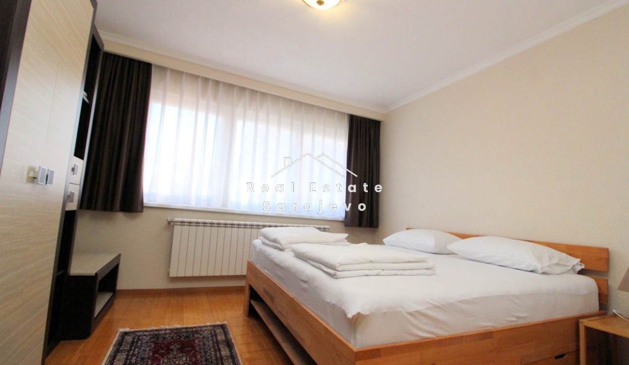 This amazing apartment for rent is located on fourth floor of residential building (no elevator) in the most central area of Sarajevo, steps away from the Cathedral and Baščaršija. Apartment has 125 m2 floor area and consists of living room with dining area and fully equipped kitchen, 2 spacious bedrooms, bathroom with big shower cabin, separated toilet, hall, balcony and 32 m2 winter terrace. It is fully furnished. Apartment has own heating system on gas and electricity (alternative), air conditioner, fireplace, washer, dishwasher, cable TV and high speed internet access. Utility bills are not included in the monthly price.