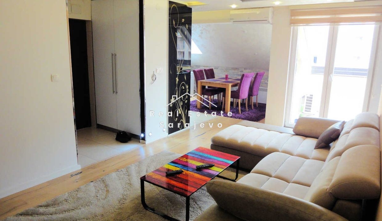 This beautiful 1 bedroom apartment for rent is located on eighth floor (elevator) of new residential building on Stup, close to the airport Sarajevo and 10-15 minutes by car to city center. Apartment has 50 m2 floor area and consists of living room, fully equipped kitchen with dining area, bedroom, bathroom with shower cabin, hall and terrace. It is completely furnished. Apartment has own heating system on gas, air conditioner, security door, washer, dishwasher, cable TV and high speed internet access. There is possibility of renting garage for additional 80 KM per month. Utility bills are not included in the monthly price.