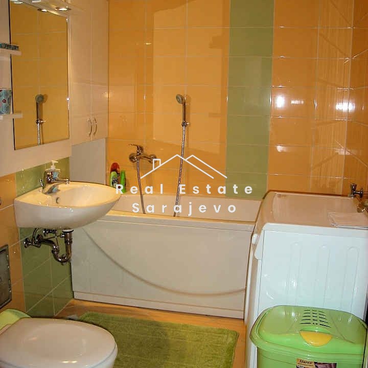 This beautiful 1 bedroom apartment for rent is located on first floor of new residential building in Ilidža area, close to Vrelo Bosne. Apartment has 60 m2 floor area and consists of 1 bedroom, study room, living room with dining area and kitchen, bathroom with bath tub and balcony. It is fully furnished. It has own heating system on gas, washer, cable TV and high speed internet access. Utility bills are not included in the monthly price.