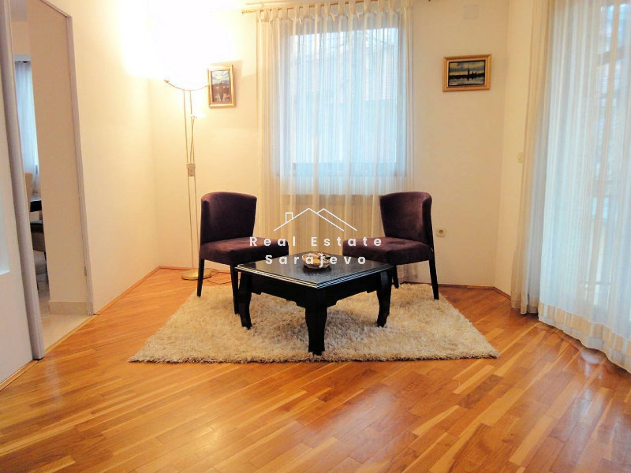 This beautiful 2 bedroom apartment for rent is located in private house (separated entrance) in Old Town, on Bistrik, 5 minutes walking distance from Baščaršija. Apartment has 75 m2 floor area and consists of living room, kitchen with dining area, 2 bedrooms, bathroom with shower cabin, hall and balcony. It is completely furnished with new furniture. Apartment has own heating system on gas, security door, washer, cable TV, high speed internet access and secured parking space. There is possibility of renting garage. Utility bills are not included in the monthly price.