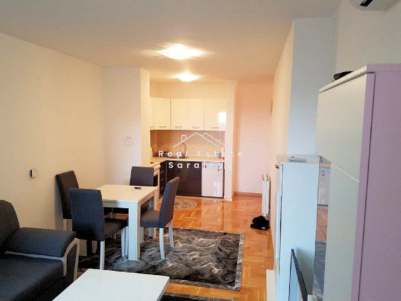 This 1 bedroom apartment for rent is located on second floor of new residential building in Nova Otoka area, 5 minutes by car from city center. Apartment has 50 m2 floor area and consists of living room with dining area and fully equipped kitchen, bedroom, bathroom with shower cabin, hall and balcony. It is completely furnished. Apartment has own heating system on gas, security door, air conditioner, washer, cable TV, high speed internet access and garage space. Utility bills are not included in the monthly price.