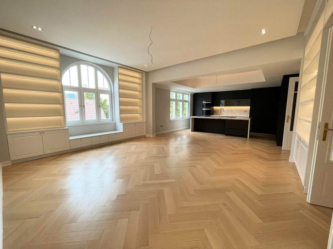 This beautiful 4 bedroom apartment for rent is located on fourth floor of new small residential building (elevator) in Pionirska Dolina, 5 minutes by car to city center. Apartment has 186 m2 floor area and consists of 4 bedrooms, big living room with dining area, fully equipped kitchen, 3 bathrooms (one with bath tub and the other two with shower cabin), hall and balcony. Apartment is not furnished. It has own heating system on gas and electricity (alternative), 2 air conditioners, washer, dishwasher, fireplace, cable TV, high speed internet access and parking space. Utility bills are not included in the monthly price. There is a possibility to rent the apartment furnished.