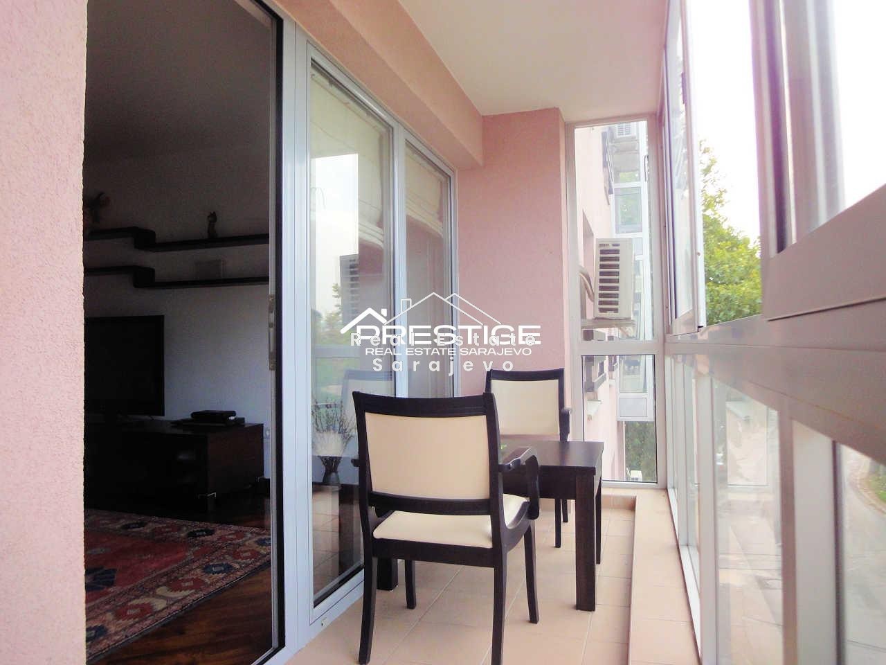 This beautiful 2 bedroom apartment for rent is located on first floor of new residential building in Velešići area, close to American Embassy and UNITIC building. Apartment has 85 m2 floor area and consists of living room with dining area and fully equipped kitchen, 2 bedrooms, 2 bathrooms (one with jacuzzi bath tub and second one with shower cabin), storage room, hall and closed balcony. It is completely furnished. Apartment has own heating system on gas, air conditioner, security door, videophone, washer, dishwasher, cable TV, high speed internet access and garage. With elevator you can access apartment directly from the garage. Price includes cleaning of the apartment once a month. Utility bills are not included in the monthly price.