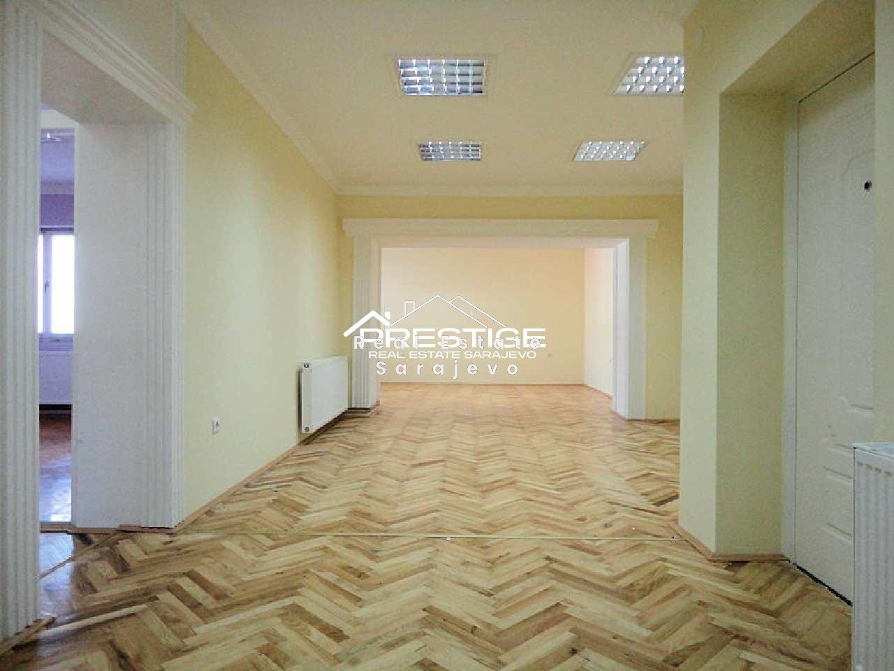 Renovated commercial property for rent is located on first floor of residential building in city center, steps away from Eternal Flame. It has 83 m2 floor area and consists of 3 rooms, 2 bathrooms, kitchen and hall. It is not furnished. Commercial property has own heating system on gas, cable TV and high speed internet access. Utility bills are not included in the monthly price.